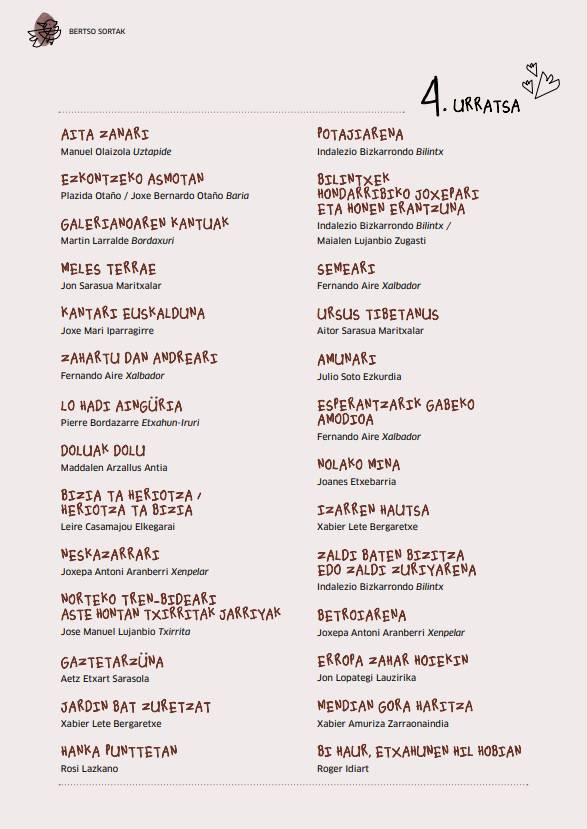 16-18 urteko ikasleekin lantzeko bertso sorten antologia. Bat-batean jarduteko baliagarriak izango zaizkigun doinuak ere ikasiko ditugu bertso sorta hauen bidez. Iraganeko bertsolariak, pasadizoak eta historiako gertaerak zein egungo bertsolariak eta gaiak lantzeko bide ere emango digute.